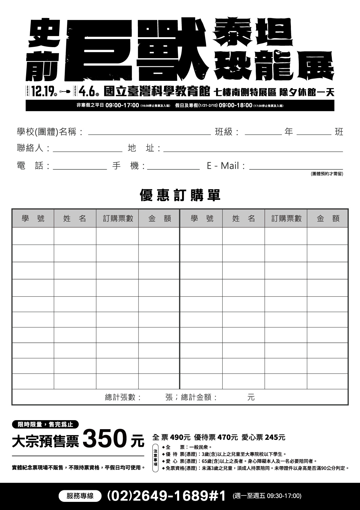 | (1) | 持大專院校(含)以下有效學生證件,以當學期註冊章為憑,入場須驗證,每證限購一張,碩博士生、社區大學、空中大學及在職進修等不適用。 |